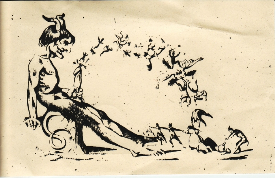 The first edition came with a brown paper inlay, a rusted nail and a cream-color flyer insert with the “wanking Devil” illustration.