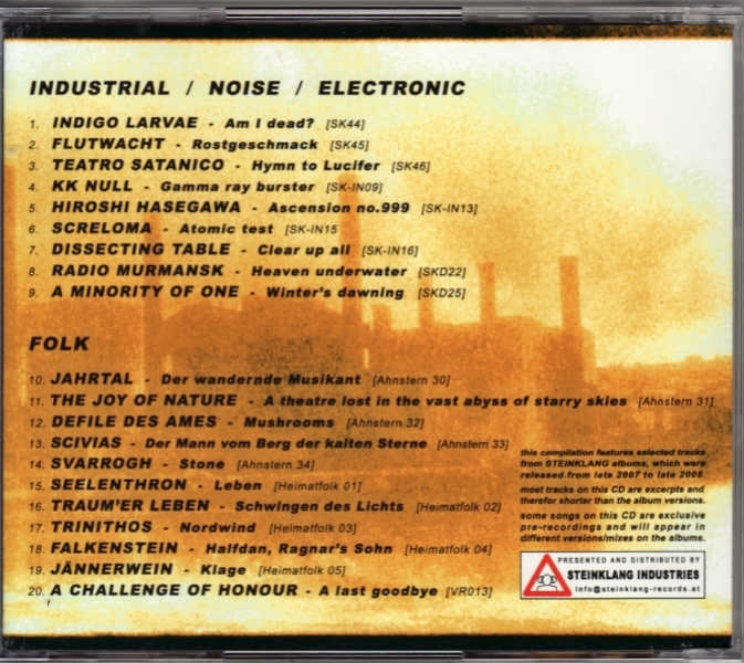 this compilation contains selected tracks from Steinklang’s albums released from late 2007 to late 2008